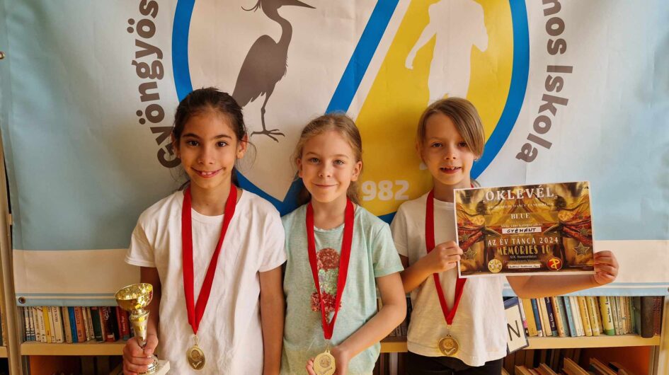 Kálváriás táncosaink, Benei Sofia (1.t), Lévai Hanna (1.t) és Agócs Olívia (2.t) méltán lehetnek büszkék magukra és csapattársaikra, mivel a Táncoló Talpak gyerek formáció show-tánc kategóriában GYÉMÁNT minősítést szerzett, és a Blue című koreográfiájukkal megnyerték Az Év Táncosai Különdíjat is. Koreográfusuk Fazekas Lídia.