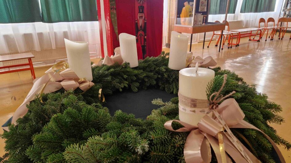 November 29-én pénteken reggel ámulatba ejtő programmal várták diáktársaikat és pedagógusaikat a fellépő gyerekek. A műsor után Nagy-Füleki Renáta igazgató asszony meggyújtotta az első gyertyát, majd növendékeink egy közös dallal zárták a műsort, melyhez minden héten újabb és újabb versszak csatlakozik Karácsonyig.