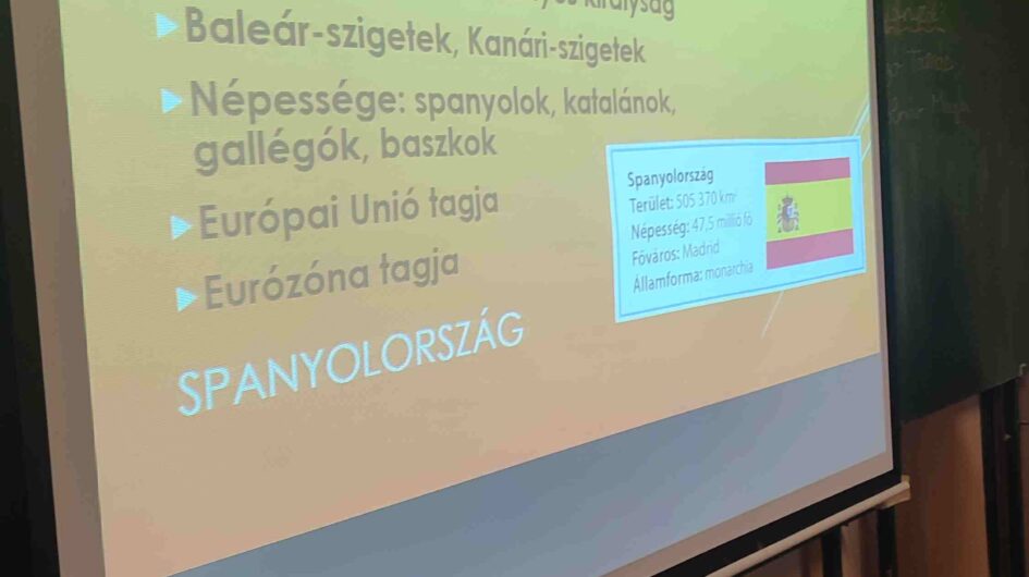 2024.09.13. Felkészítő órát tartottunk az Erasmus+ diákmobilitás programba résztvevőknek. Ismertettük a programot. Betekintést nyertek Spanyolország történelmébe, kultúrájába, gasztronómiájába. Felelevenítettük az ezzel kapcsolatos földrajzi ismereteket.