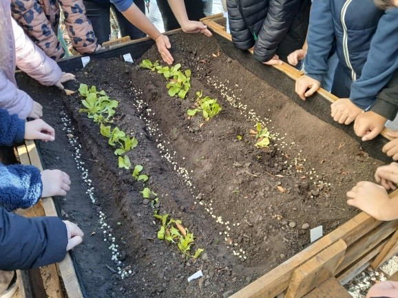 A szeptemberben elültetett növények időközben szépen megnőttek, így most elérkezett a szüret ideje. A gyerekek nagy örömmel kóstolták meg a zöldhagymát, salátát és spenótot, amelyek mindenkinek nagyon ízlettek.