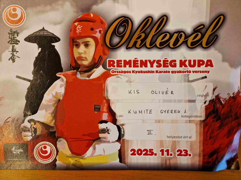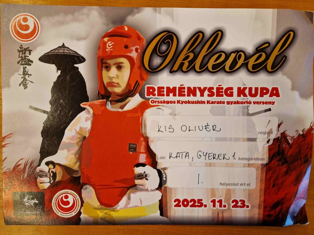2025. november 23-án Debrecenben rendezték meg a Reménység Kupát, amely a Magyar Tradicionális Kyokushin Karate Szövetség területi versenye, kezdők és haladók számára. A versenyen a Kálváriaparti Sport- és Általános Iskola tanulója, Kis Olivér (4.t) is tatamira lépett és kivételes eredményekkel tért haza!