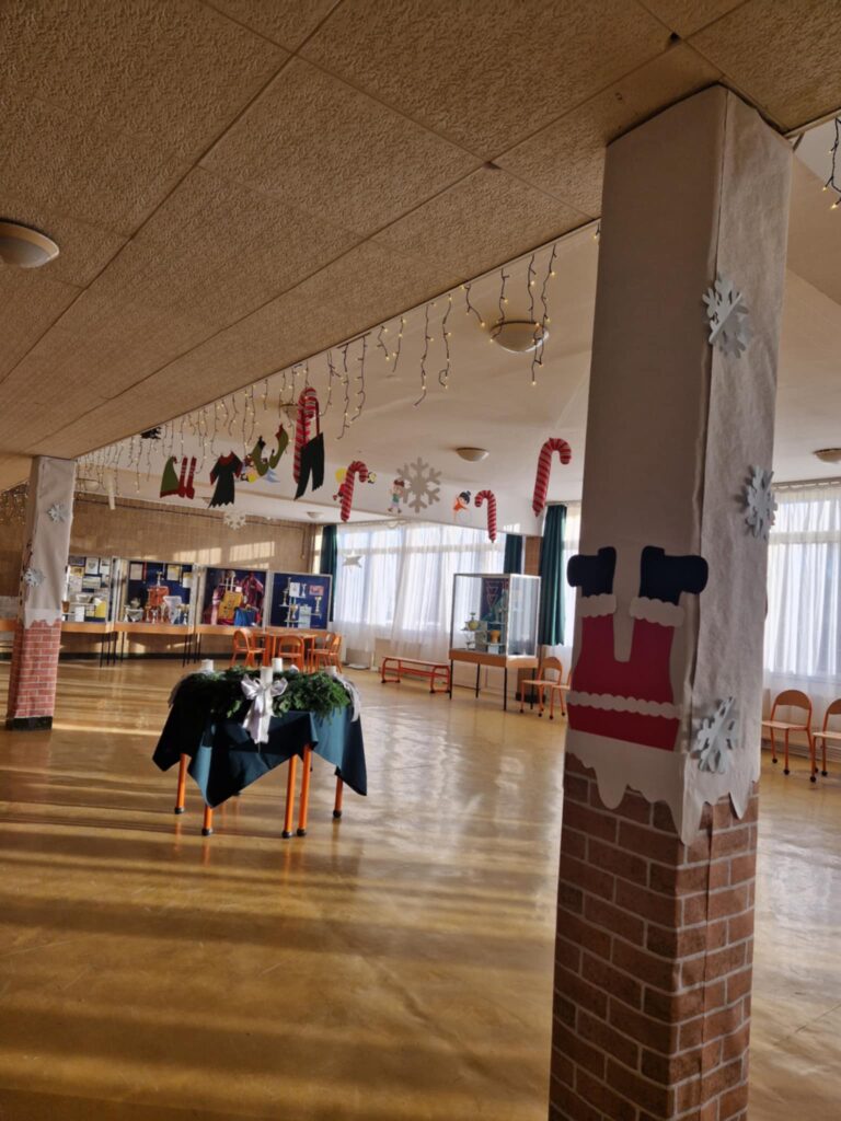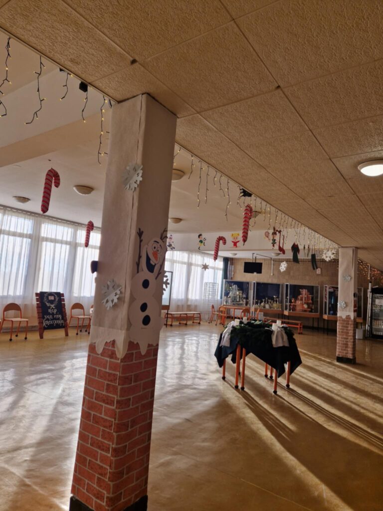 Téli napsugár simogatta a díszbe öltöztetett aula szívét,