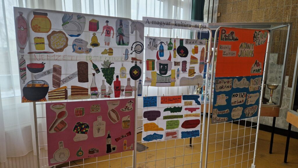 A faliújságokra felkerültek a tanulók rajzai és alkotásai, amelyek színesen és személyesen mutatták meg, mit jelent számukra a magyar nyelv, a művészet és a hagyomány.
