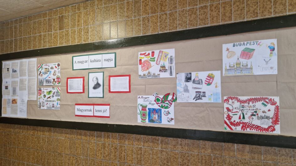 A faliújságokra felkerültek a tanulók rajzai és alkotásai, amelyek színesen és személyesen mutatták meg, mit jelent számukra a magyar nyelv, a művészet és a hagyomány.