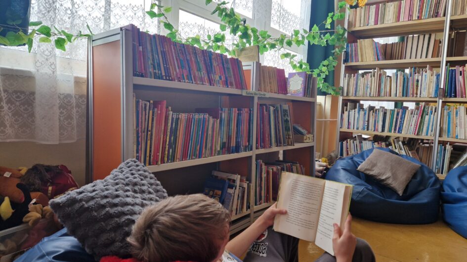 A hideg téli napokon a Kálvária könyvtára igazi meghitt kuckóvá válik: meleg, barátságos tér, ahol a gyerekek lelassulhatnak egy kicsit az iskola nyüzsgése közepette. A polcok között csendes olvasók húzódnak meg, máshol társasjátékok köré gyűlnek kisebb csapatok, és vidám beszélgetések töltik meg a teret.