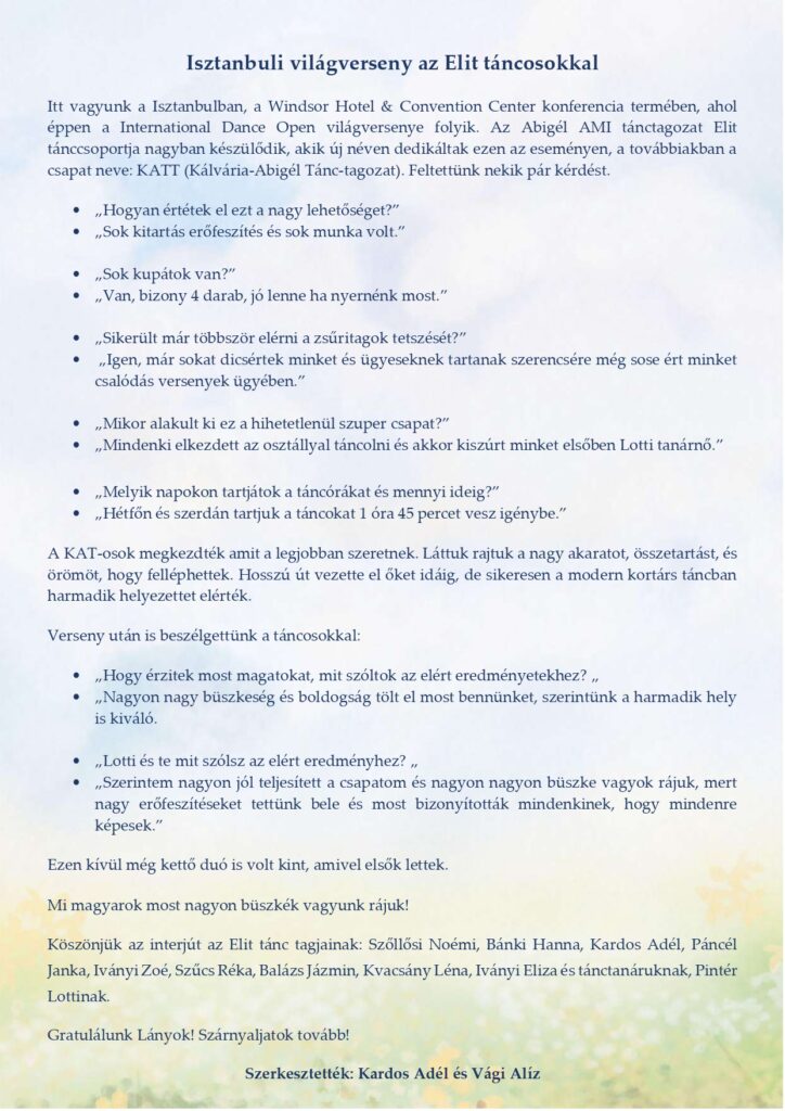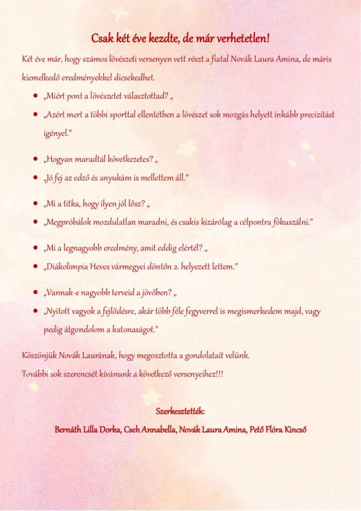 Bízunk benne, hogy olvasóink számára is olyan élményt nyújtanak majd ezek a cikkek, mint amilyen örömmel és odaadással készültek.